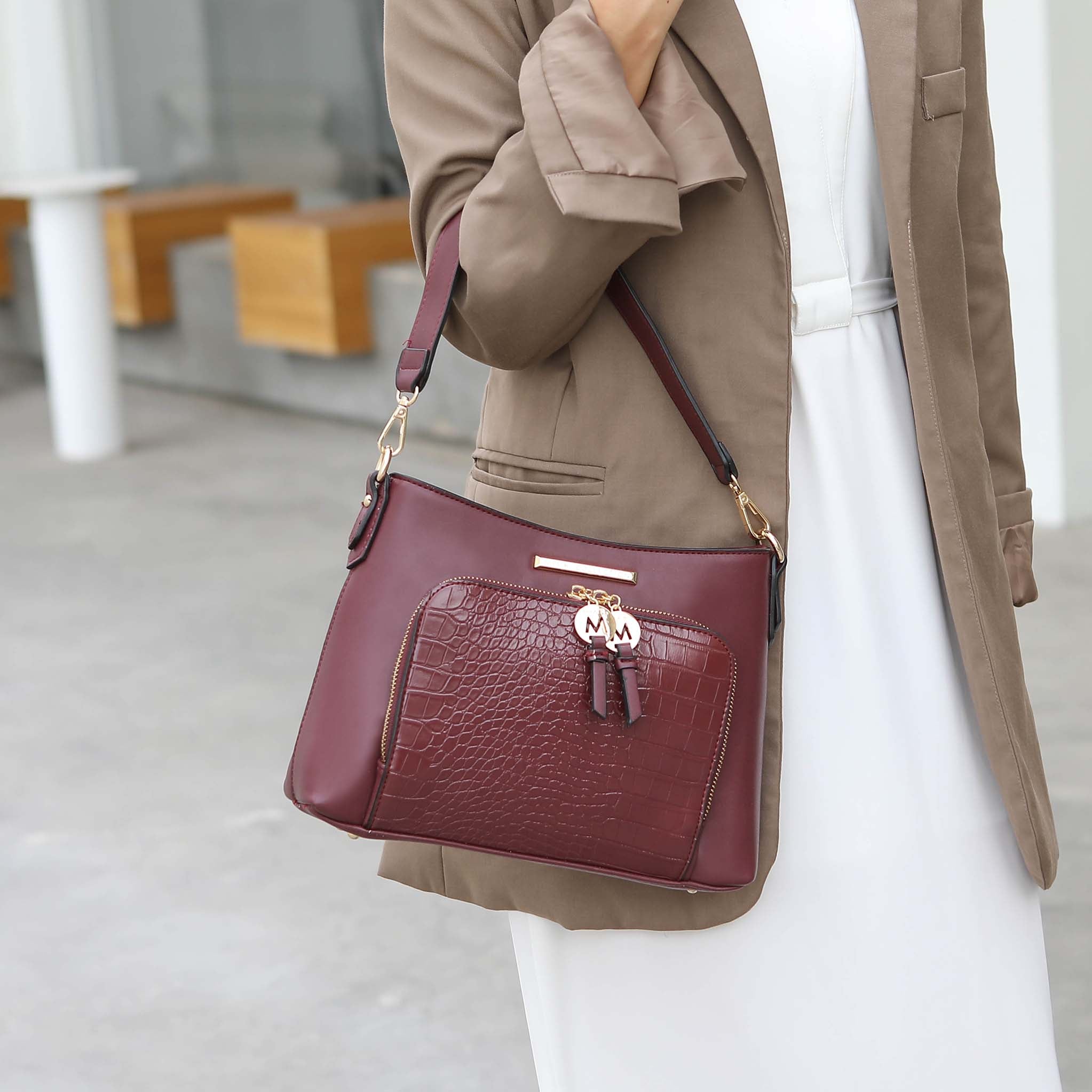 - Gold-tone hardware