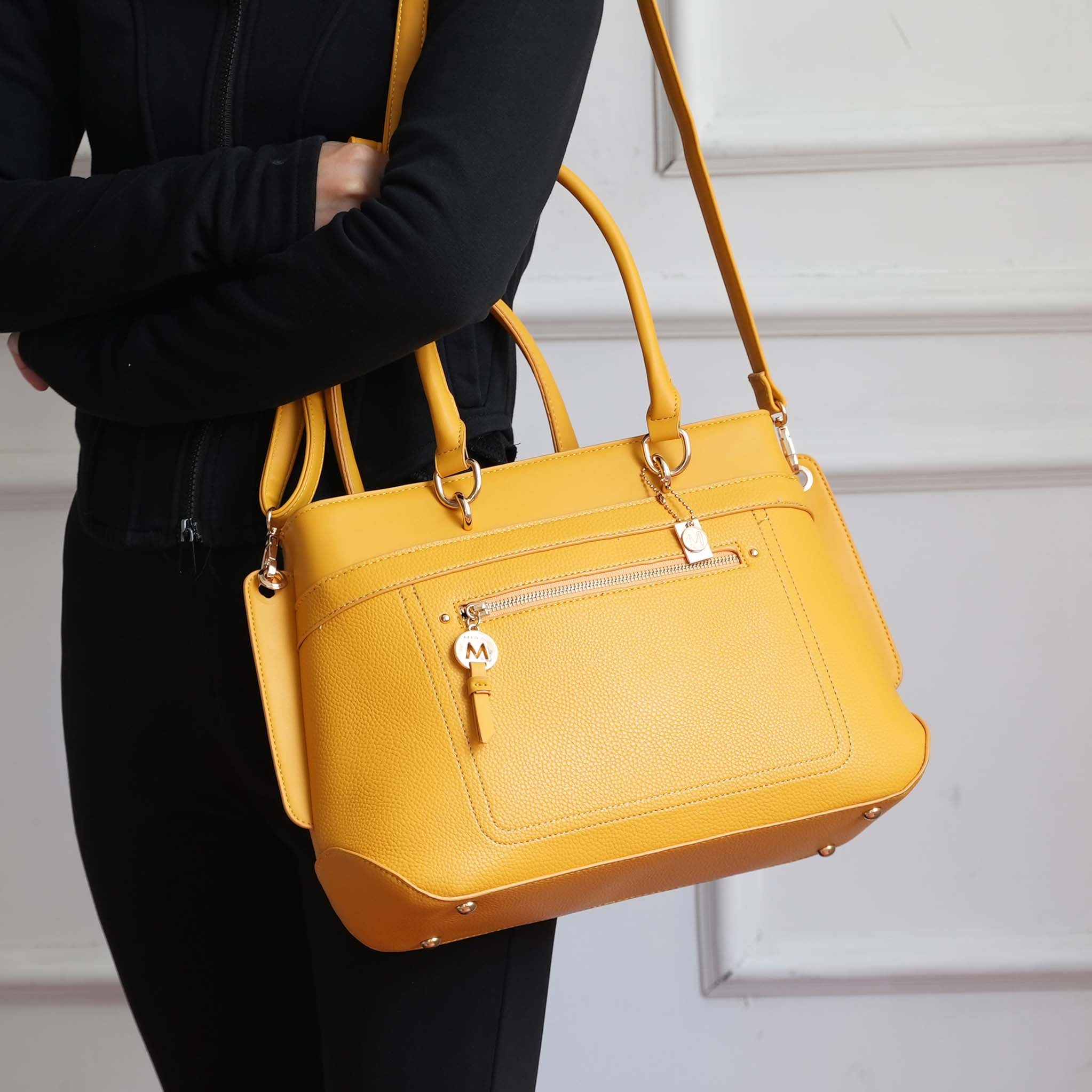 - Gold-tone hardware