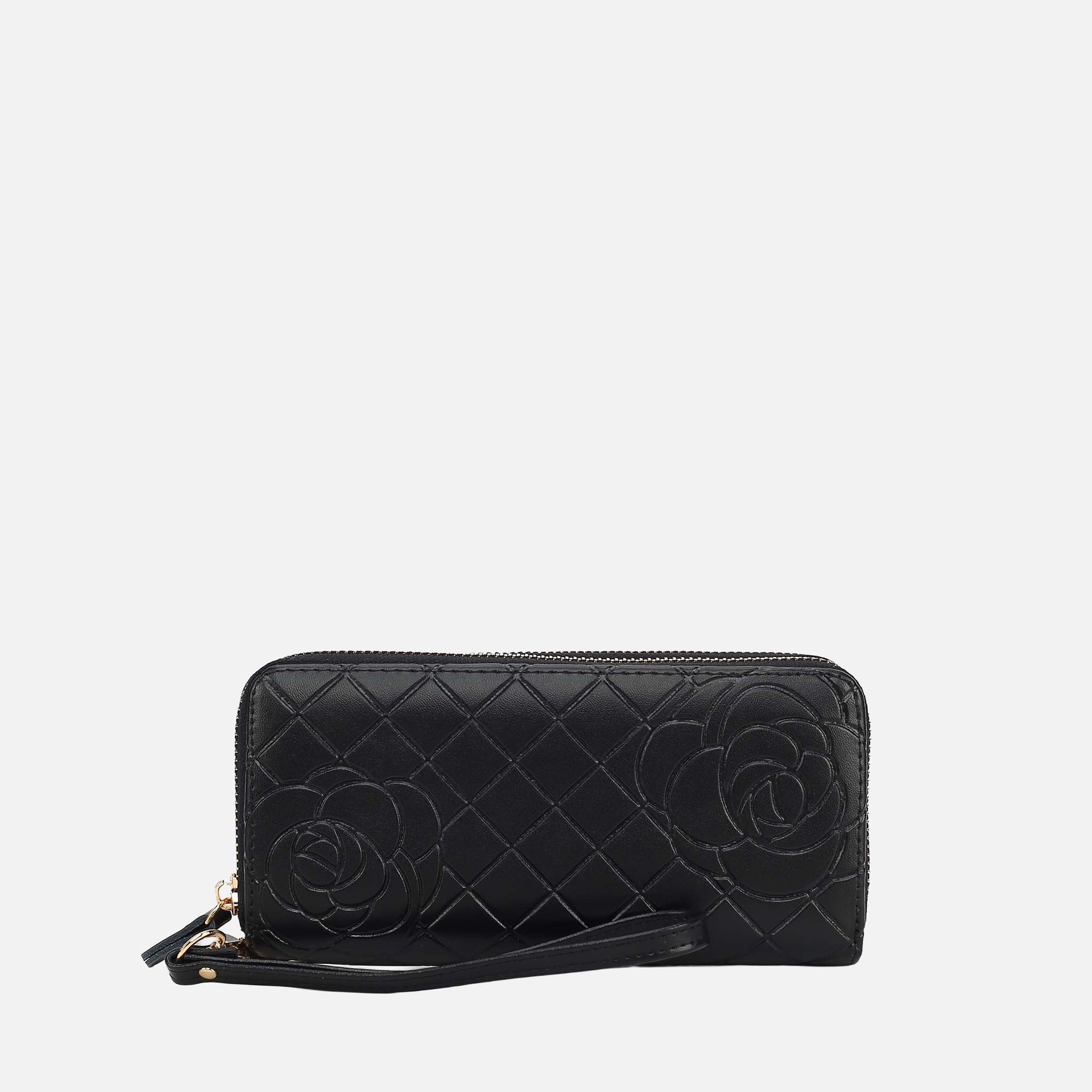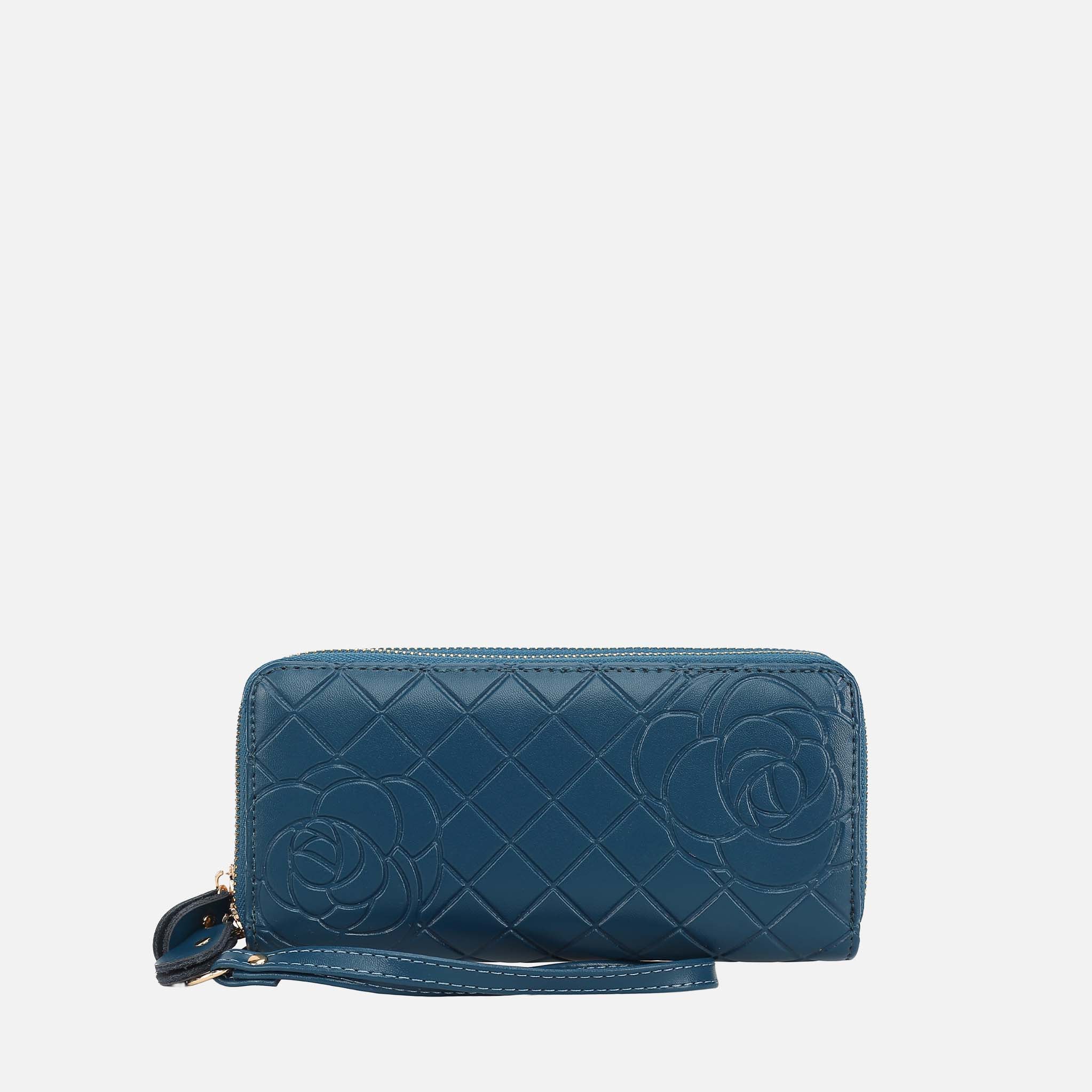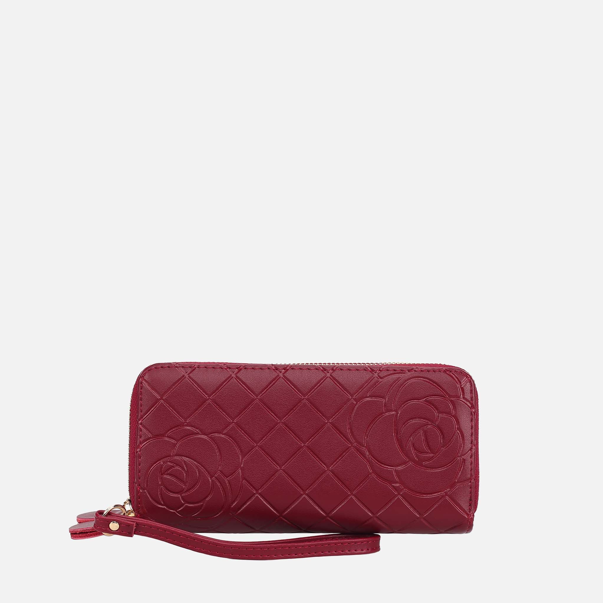 - Interior details: The first compartment features 8 card slots, a zipper coin compartment, and 2 slit pockets. The second compartment features 2 bill compartments.