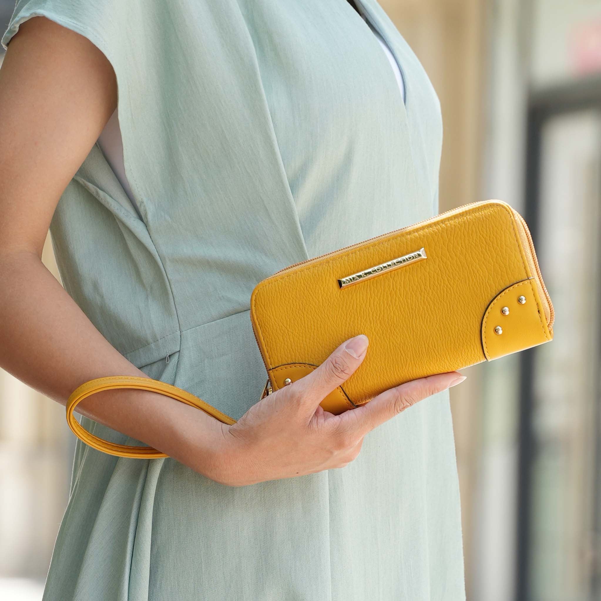 8 card slots, coin zip compartment, 2 slip pockets