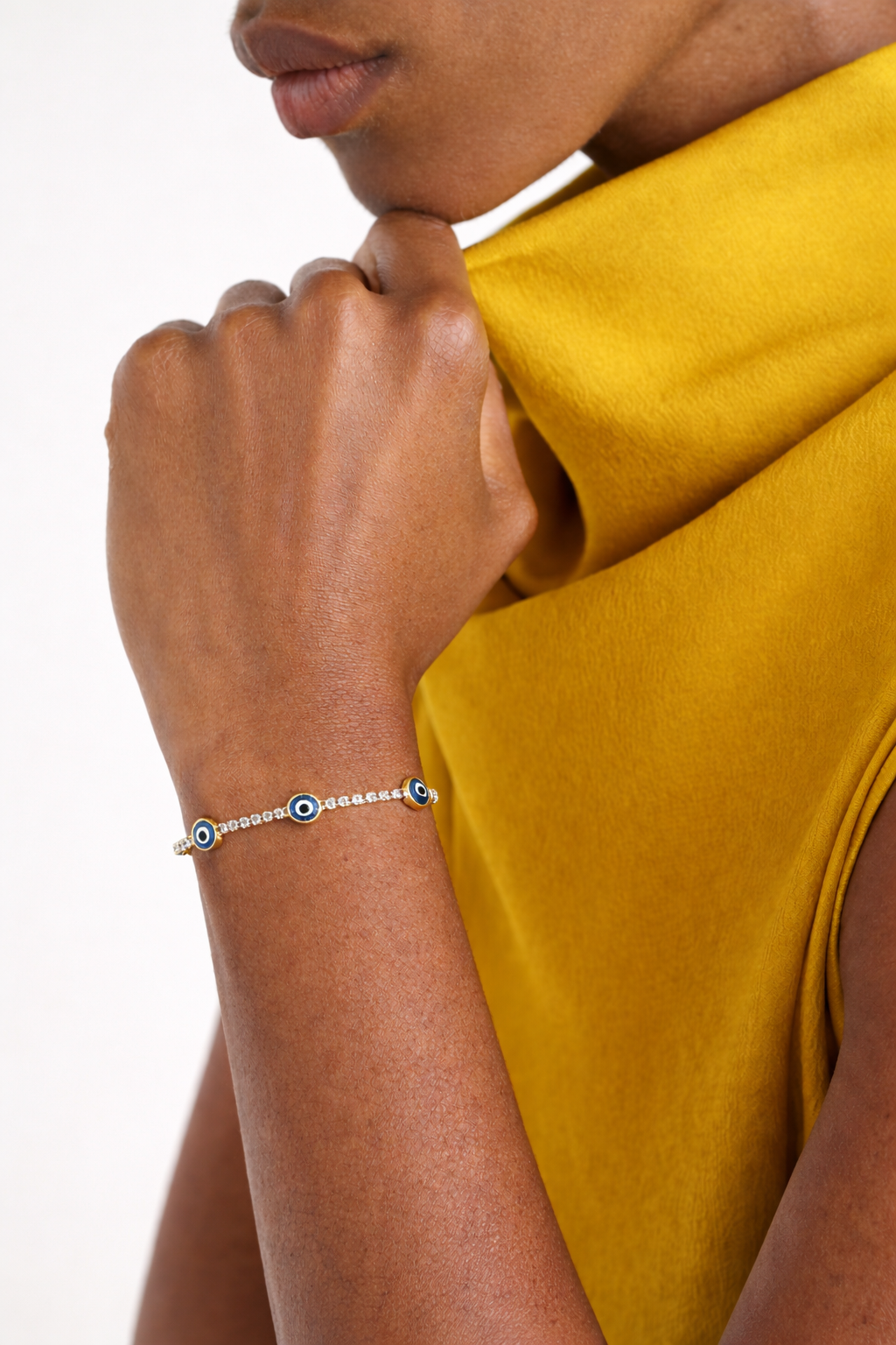 A slim gold tennis bracelet punctuated by three enamel accents. The balance of structure and shine makes it easy to wear on repeat.