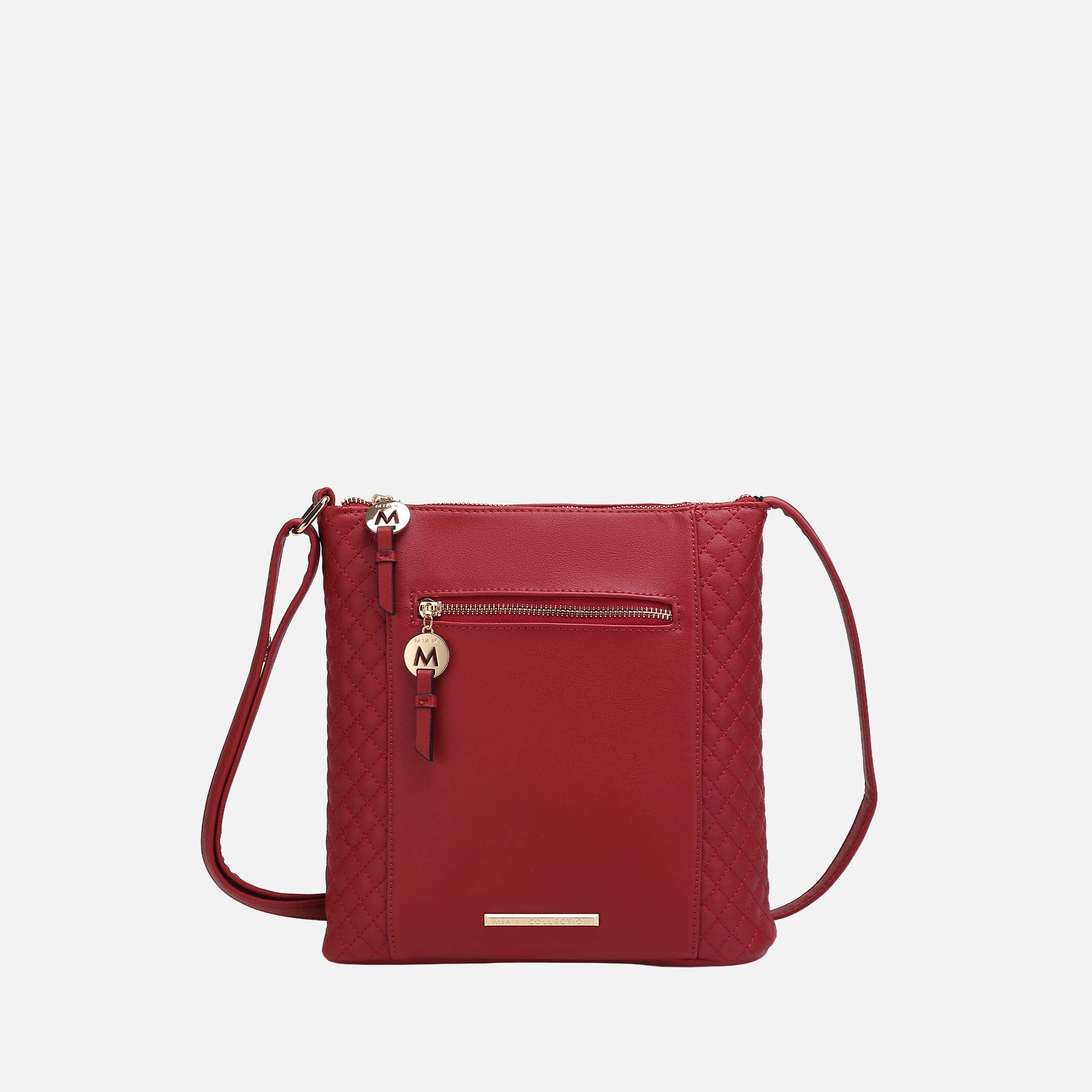 Our Miranda Crossbody Bag is ideal for both daily commutes and weekends away. The compact design is crafted from luxe smooth vegan leather. This handbag features a quilted pattern and gold-tone hardware for tactile glamour. Open the top zipper closure to reveal a fully lined well-organized interior with two slip pockets and a wall zip pocket. The exterior features a back and front zippered pocket, perfect to keep all your small items easy to reach. This style has a flat base for stability. The adjustable crossbody strap can be worn in a few different ways. Go hands-free while you’re running errands