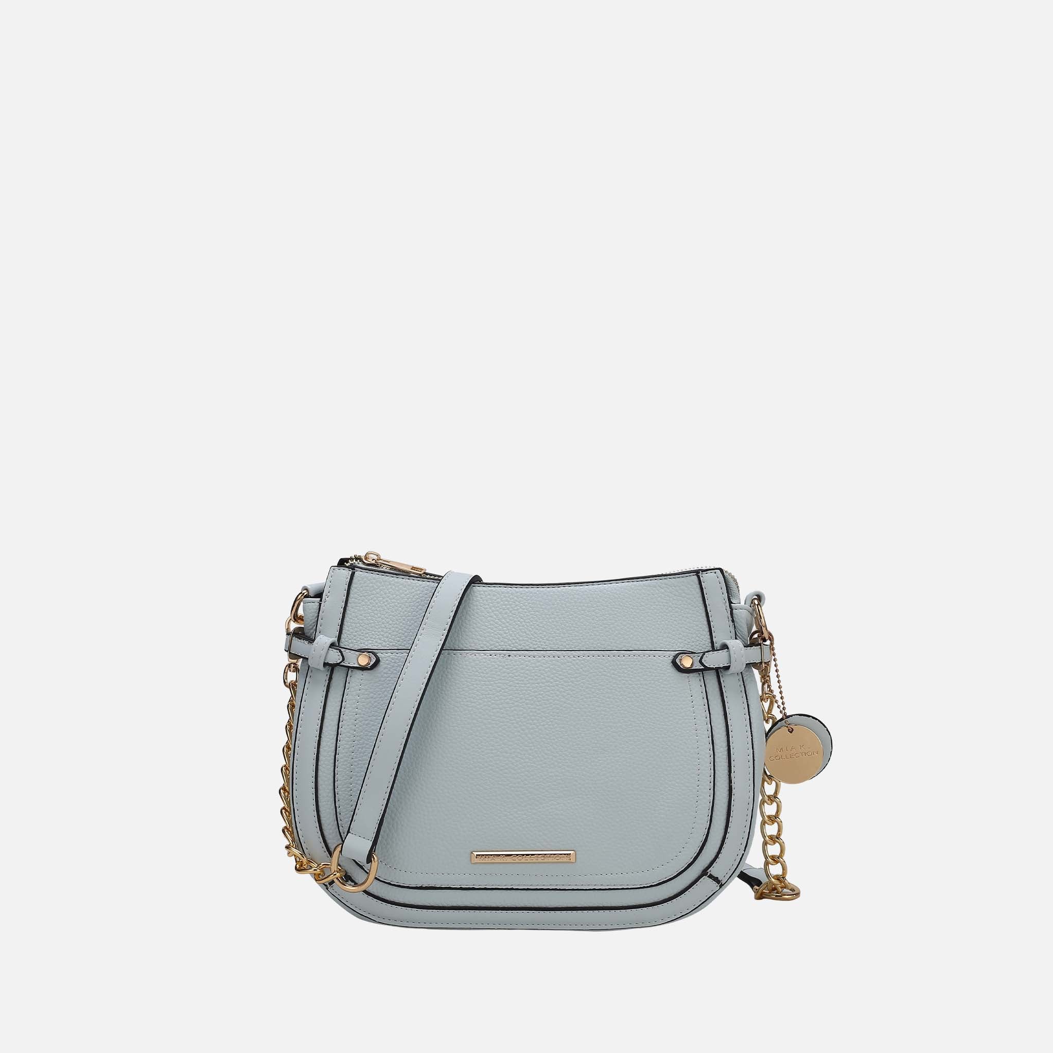A polished take on the always-chic shoulder bag, the Raelynn Bag offers up a streamlined silhouette crafted from high-quality vegan pebbled leather with gold-tone hardware. Open the top zipper closure to reveal a fully lined well-organized interior with two slip pockets and a wall zip pocket. The exterior features a back zippered pocket, and a front slip pocket, perfect to keep all your small items easy to reach. It comes with our signature circle emblem hanging on the side for decoration and also our Mia K plate on the front. The adjustable strap is designed for multiple carrying options. The Raelynn Shoulder Bag is a timeless style you will turn to season after season.