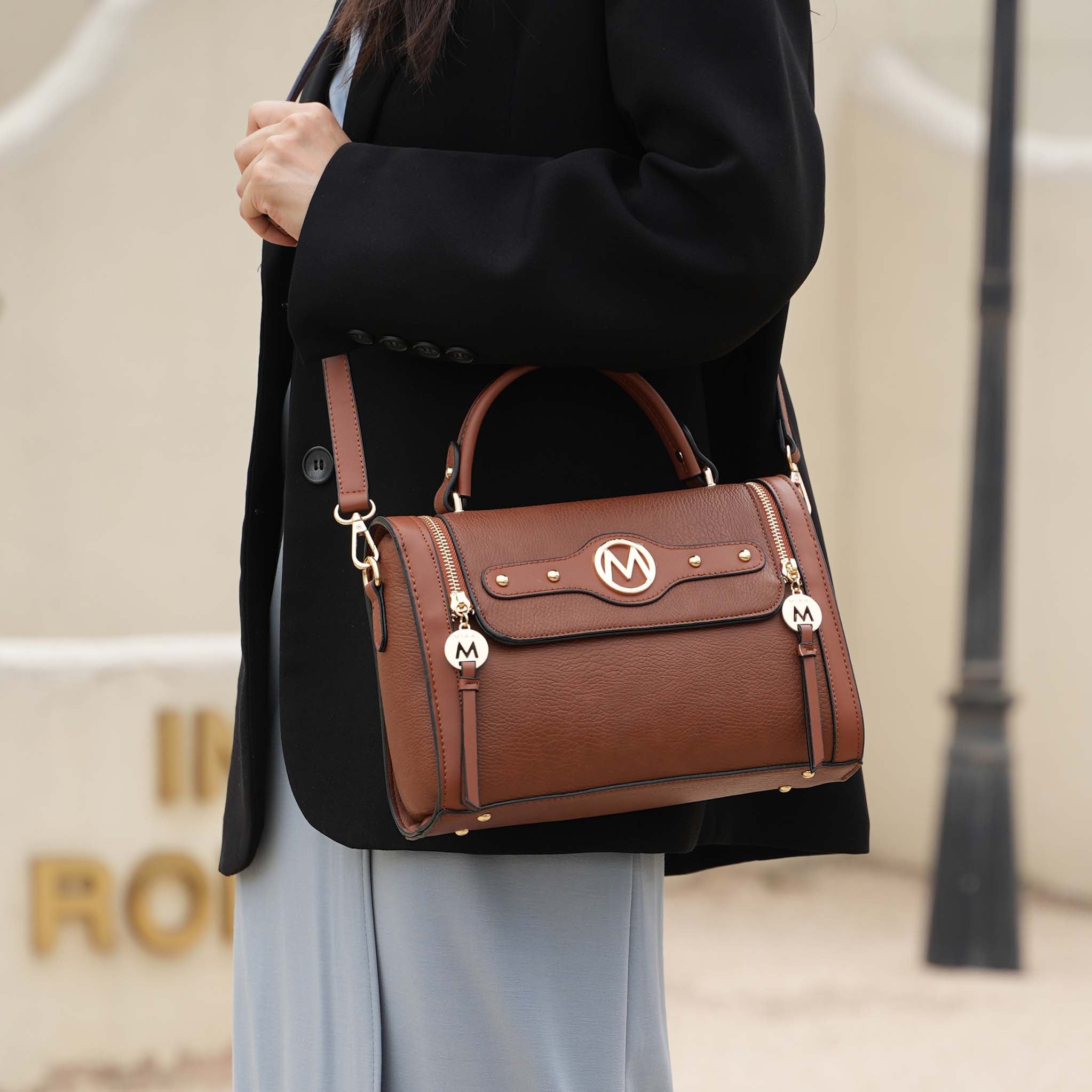 · Gold-tone hardware