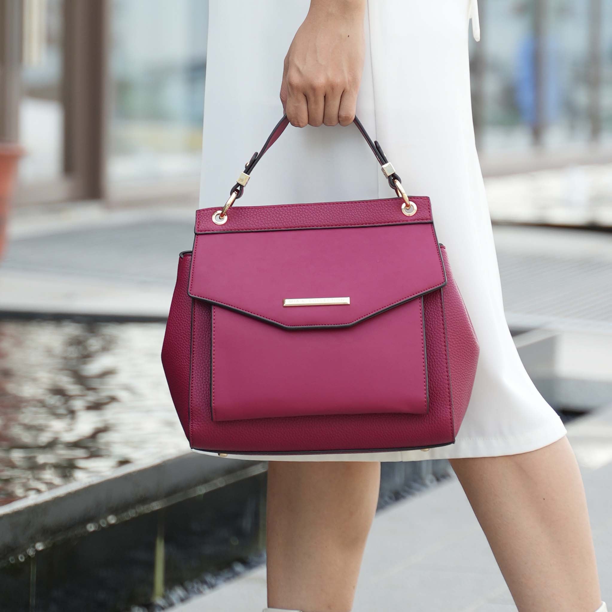 - Gold-tone hardware